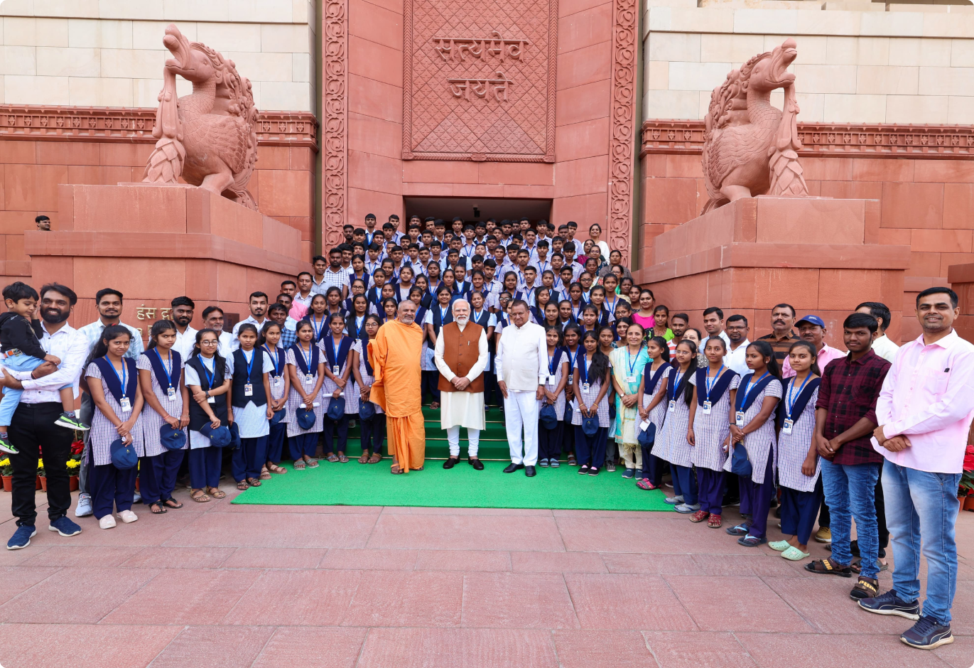 In the group photo, the tableau captured Prime Minister Shri Narendra Modi alongside Pujya P.P. Swamiji and the dynamic MP from Valsad, Dang, Dr. K.C. Patel. The collective presence of students, teachers, and staff marked a momentous occasion in our ongoing journey towards empowerment and enlightenment"
